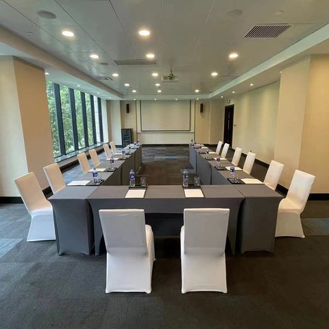 ผ้าคลุมโต๊ะสแปนเด็กซ์สำหรับโรงแรมจัดเลี้ยงงานแต่งงานผ้าปูโต๊ะ8FT 4ft 6FT โลโก้ได้ตามต้องการ